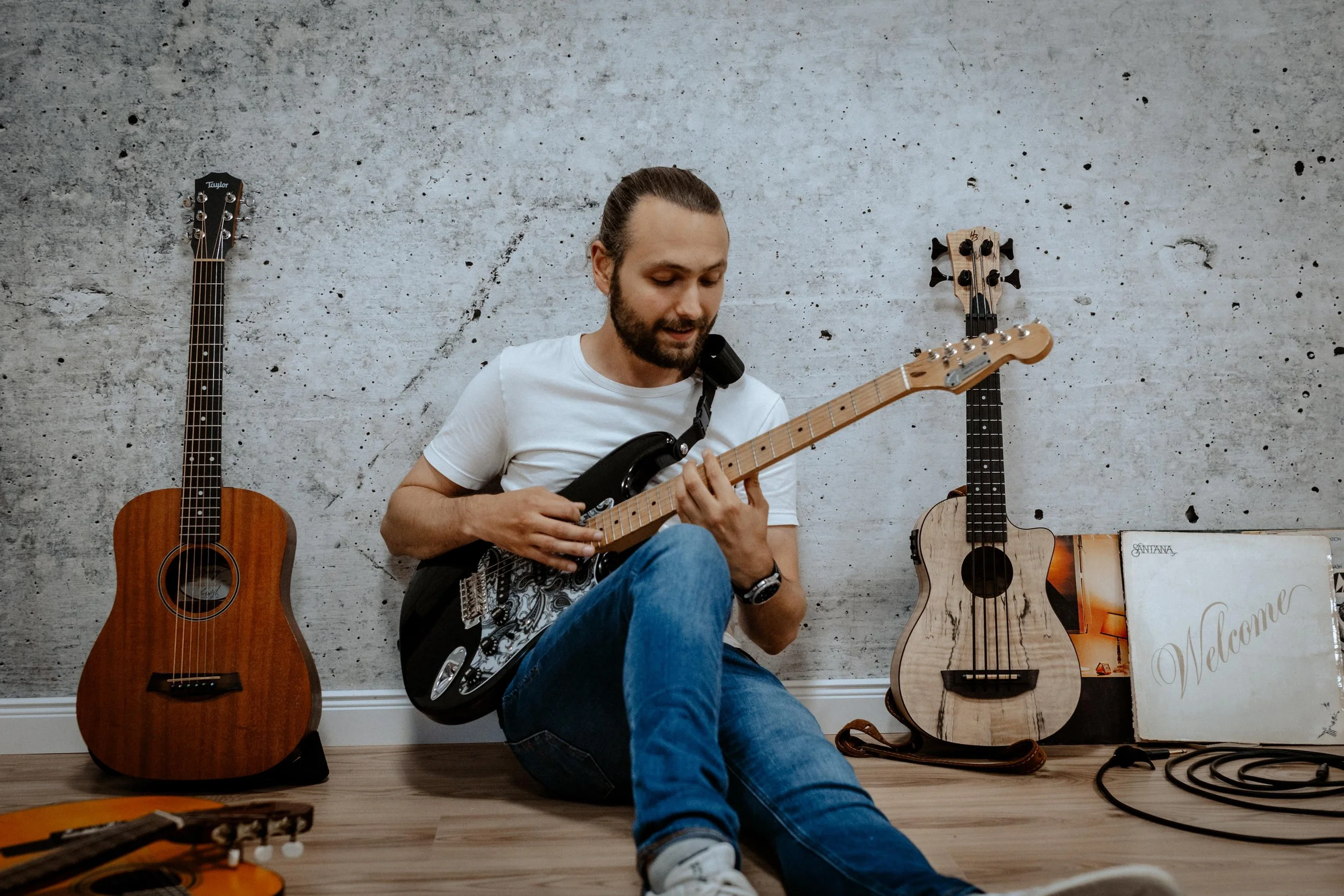 Der Alzeyer lehrt seit über zehn Jahren und ist seit dem Abitur als Berufsmusiker aktiv. Sein eigener musikalischer Weg begann am Klavier und führte ihn über Gitarre, Bass und Ukulele bis hin zu Schlagzeug und Gesang. Diese Vielseitigkeit hilft ihm, Zusammenhänge zwischen Rhythmus, Harmonie, Melodie und Timing schnell greifbar zu machen – egal, ob jemand ganz am Anfang steht oder gezielt an Stil, Technik oder musikalischem Ausdruck arbeiten möchte.